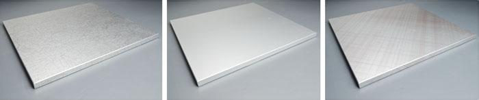 陽極氧化鋁蜂窩板非常出色地迎合了以上各種要求。陽極氧化鋁蜂窩板源自于航空工業復合蜂窩板技術,是一種典型的三明治構造方式,由面板陽極氧化鋁、背鋁板和中間鋁制蜂巢芯材構成,具有強度高、平整度好等優異性能;陽極氧化顏色豐富、金屬感強、表面處理效果多樣,有鏡面、拉絲、噴砂面、鈦銀、十字紋、斑馬紋、網紋、柔光等各種樣式。裝飾用陽極氧化鋁材與其他金屬材料,如銅、不銹鋼和鐵相比,從功能上來講是一個更好的選擇。